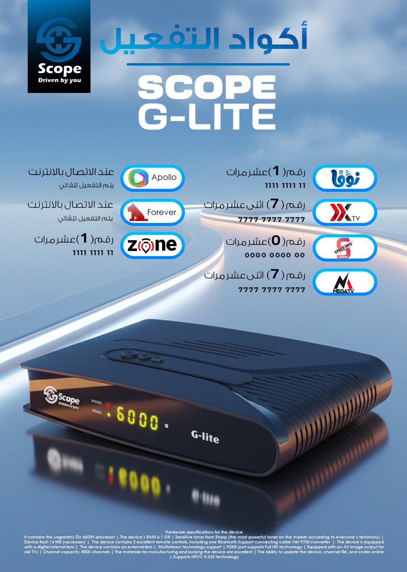 يدعم تقنية H.265 المسئولة عن إستقبال القنوات عالية الجودة.